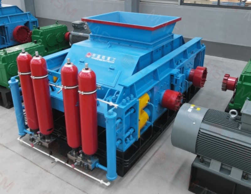 三、出料粒度的調節:兩輥小。墊片裝置是通過增減墊片的數量或厚薄來調節出料粒度大小的,當增加墊片時兩輥輪間隙變大,當減少墊片時兩輥輪間隙變小,出料粒度變小。